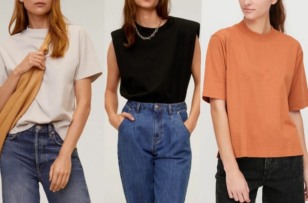 Базовые вещи имеют простую форму и хорошо сочетаются между собой, создавая множество комплектов. Итак. 1. Футболка