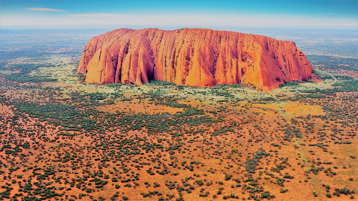 Издалека Улуру кажется ровным, но при ближайшем рассмотрении скальное образование оказывается очень шероховатым с изрезанными склонами, гребнями, канавками, каньонами и пещерами, разбросанными по всей поверхности. Аборигены верят, что несовершенства в текстуре поверхности означают путешествия их предков. Происхождение имени Ayers Rock:
