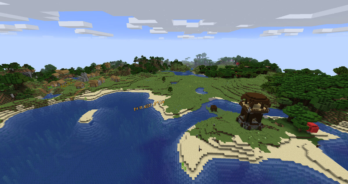 Отличный и очень необычный сид при создании мира с этим ключом вы появитесь в дереве которая расположена на на островах в океане, и совсем рядом с деревней есть две подводные крепости.