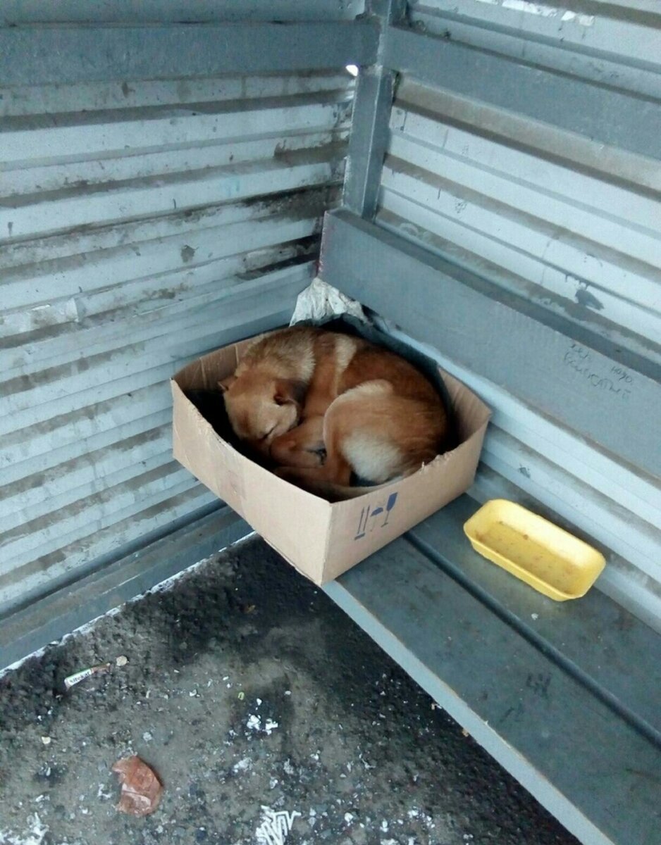 На фото мы видим маленькую собачку, которая лежит на остановке в картонной коробке... История фотографии: Это случилось недавно. Девушка по имени Настя (имя было изменено по просьбе "виновницы" этого поста), как обычно отправлялась на пары в универ, но вдруг, её внимание привлекла эта малышка, которая мило лежала в картонной коробке. Как говорит сама Анастасия - "Это самое милое и в тоже время грустное, что я видела... У меня чуть не полелись слезы... ". Настя долгое время не знала что делать, так как в её городе нет организаций, которые смогли бы помочь этой бедолаге. После не долгих раздумий, она решила, что сегодня, в принципе, можно пропустить пары. Поэтому она взяла эту милашку к себе домой. Сейчас она живет у Насти дома, но, к сожалению, Настя не в состоянии оставить Юми у себя (да, Анастасия дала ей такое необычное имя), поэтому я и написала эту статью. Если у кого есть возможность, то возьмите Юми. Не могу оставить здесь данные не свои, не Настины, так как прав
