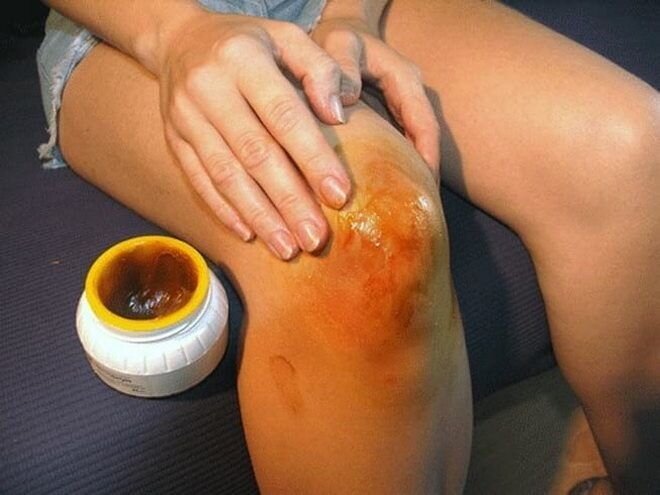 И прикладываем на сустав, а сверху обмотайте целлофаном или теплой тканью.