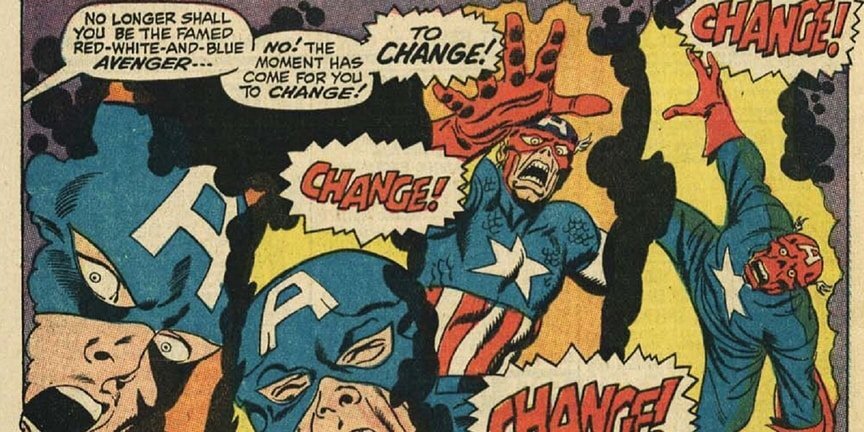 В комиксе Captain America #115 Красный Череп использует космический куб, чтобы поменяться телами с Капитаном. Он хотел создать Стиву Роджерсу проблем, идеально влившись в Мстителей, чтобы никто не заметил подмены. Череп действовал с умом, аккуратно подрывая отношения Капитана с другими Мстителями, но стараясь не выдавать себя. Он выслал Стива в теле Черепа в специальную тюрьму-остров, где содержались бывшие союзники Черепа, которых он предал. Череп думал, что они убьют Роджерса, и тогда он больше не будет ему мешать, но все пошло не по плану: Капитан вылепил себе новое лицо из глины (!) и притворялся в тюрьме совершенно другим человеком. Стив смог вернуть себе тело благодаря помощи Сэма Уилсона (Сокол), который поверил ему и стал его новым помощником.