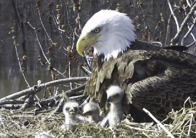 Всем привет! Сегодня расскажем, какое место в жизни американцев занимают Орлы в Америке, т.е. в США. К орлам в Америке совершенно особенное отношение, это не просто символ Америки, они находятся под защитой государства. Поводом написать эту статью послужил тот факт, что сейчас большая часть населения Америки следит за орлиным гнездом в котором установлена видеокамера. И каждый может наблюдать за жизнью орлиного семейства, в котором на данный момент родились три птенца. Когда мы начали наблюдать за гнездом там было три яйца. Инкубационный период занимает от 1 до полутора месяцев. Яйца высиживали оба родителя. Сейчас они оба кормят птенцов, пока птенцы не оперятся и не научатся летать. Это гнездо находится в штате Iowa, наблюдать можно круглосуточно. За этим гнездом наблюдают уже в 45 странах мира. Орлы в Америке образ жизни Орлы строят огромное гнездо из прутьев и листьев. Гнездо может быть до 2, 5 метров поперек! Гнезда расположены высоко от земли в больших деревьях или на утесах. Обыч