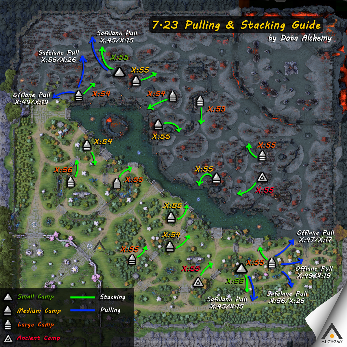 Пользователь Reddit с ником DotaAlchemy опубликовал на портале обновленную карту Dota 2 (для патча 7.23) с отмеченными на ней таймингами стаков и отводов лесных крипов. Напомним, что в патче под номером 7.23 разработчики обновили внутриигровую карту Dota 2. Подробный обзор нового ландшафта вы найдете в нашей новости. Во вчерашнем обновлении под номером 7.23a разработчики внесли ряд правок в баланс Dota 2. В частности, Valve изменили принцип выпадения нейтральных предметов, а также отбалансировали более десятка персонажей (включая двух новых). всем спасибо за просмотр и поднятия ммр