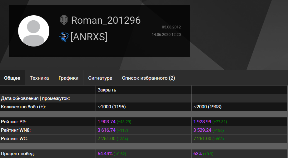 Здравствуйте, меня зовут Роман, мой ник в wot Roman_201296, состою в клане анархистов. За последние 2000 боёв имею средние 3530 вн8 и 63% побед. Просто хотел сказать, что я понимаю о чем пишу и могу поведать вам.