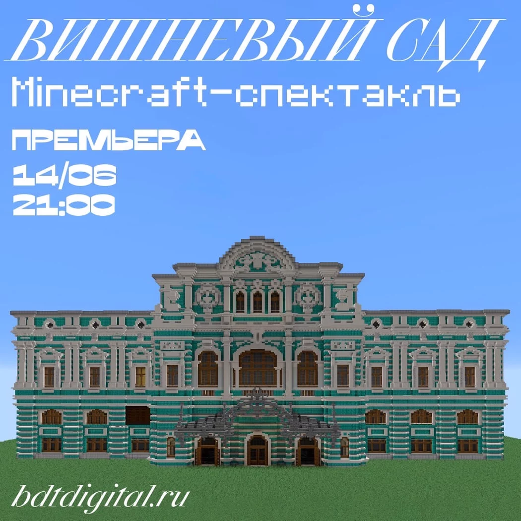 Большой драматический театр поставит «Вишневый сад» в Minecraft БДТ имени Г. А. Товстоногова анонсировал постановку пьесы Чехова «Вишневый сад» в Minecraft. По утверждению организаторов, это первый в России подобный спектакль. В нем примут участие артисты Ирина Патракова, Виктор Княжев, Максим Бравцов и Алексей Фурманов, а также бот-зомби. Для зрителей построили копию петербургского здания — перед началом спектакля можно будет пройтись по виртуальным помещениям театра. В зрительный зал попадут лишь 90 человек. Для этого нужно обладать лицензионной версией Minecraft и до 20:00 скачать лаунчер с сайта БДТ. Остальные смогут посмотреть трансляцию в YouTube и ВКонтакте. В сообщении театра указано, что постановка 14 июня — первая в серии Minecraft-спектаклей по мотивам школьной программы.