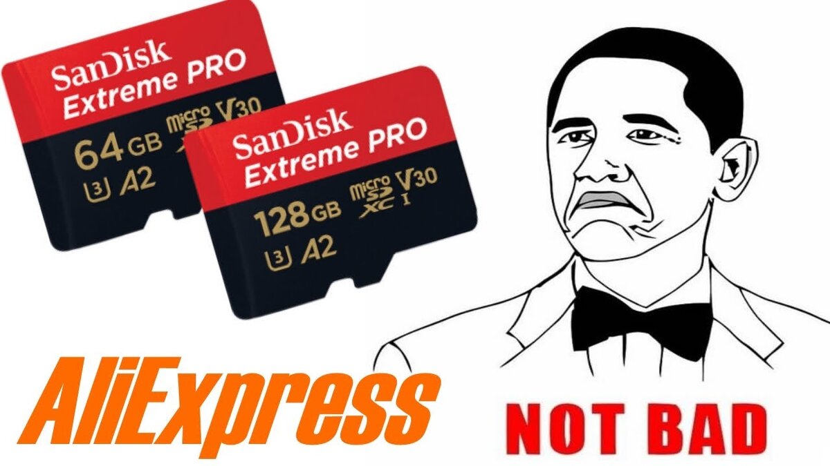 Лучшая флэшка для 4k видео c Aliexpress SanDisk micro sd 64gb