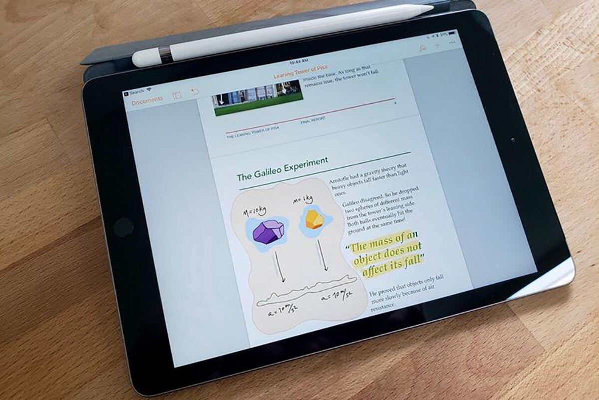 -apple pencil и фирменная клавиатура не идут в комплекте, и их стоит покупать отдельно, тем самым цена планшета для учебы увеличивается.