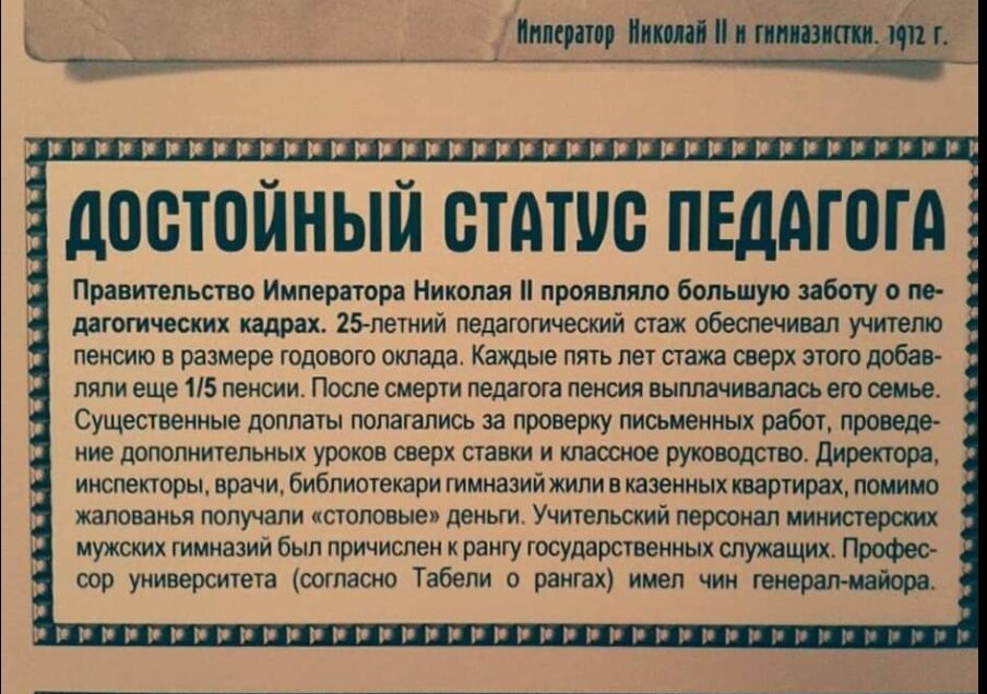 - "В Советское время учитель не имел высокой зарплаты, но ощущал свою важность и правоту. Сейчас учителя воспринимают как продавца и любой неадекватный родитель может потребовать что угодно".