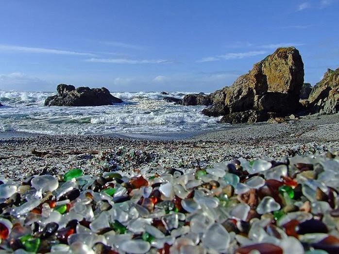 История Стеклянного пляжа (Glass Beach) поистине удивительна. Это место — живое доказательство созидательного начала природы. Все началось, когда пляж неподалёку от городка Форт-Брагг превратился в обычную свалку. Жители тоннами свозили сюда мусор и не задумывались, какой серьёзный урон наносят природе. Вскоре местные власти опомнились и свалку закрыли — крупные предметы вывезли, но расчищать пляж от мелочевки, вроде битых бутылок и пластмассовых осколков, не стали.