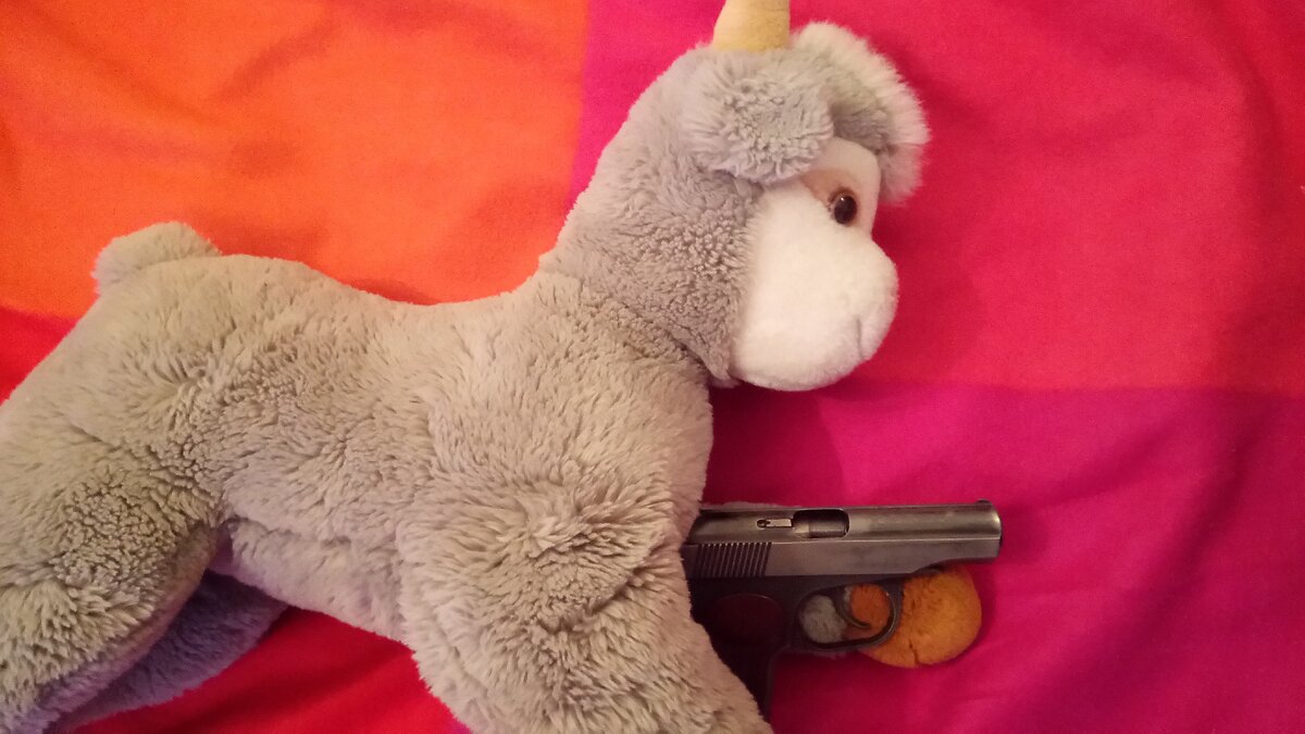 Так почему же мы периодически слышим о ситуациях, когда демонстрация оружия только провоцирует дальнейшую агрессию? Все банально и просто. Посмотрите на первое фото в статье. На нем плюшевый козел Кирюша с пистолетом... он вас напугал? Не думаю. Если бы плюшевый козел Кирюша держал копыта на спусковом крючке боевого РПК... ваши ощущения изменились бы? Сомневаюсь.