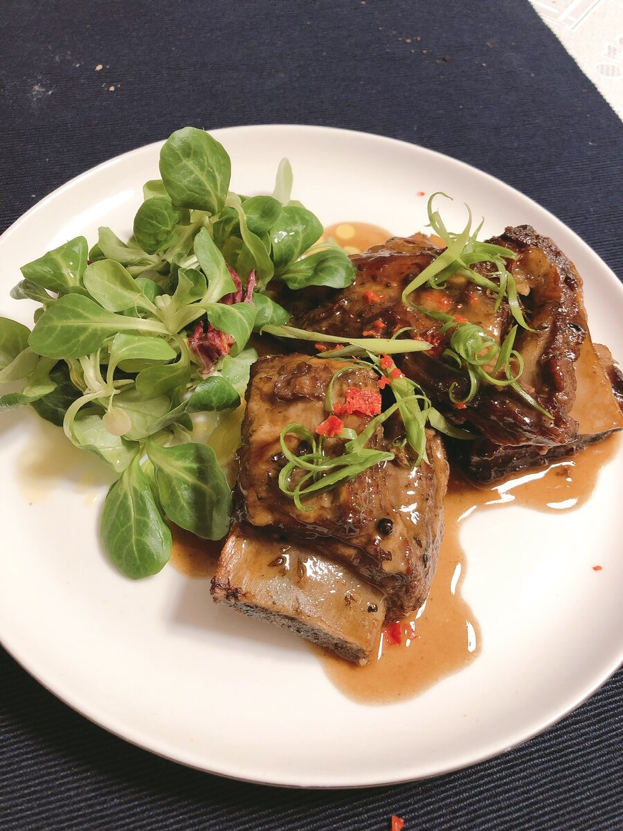 Ребра!🐂🐂🐂 Ребра с пивом-старые друзья!🤝☯️ Считаю что если очень редко,то вреда будет минимум,а пользы от полученного позитива масса!😀 ❗️«Ребра с пивом»: •Ребра замариновать в специях и оливковом масле (соль,перец,тимьян,хмели-сунели,паприка,аджика...) •Обжарить на масле со всех сторон,добавить плотного,темного пива с глубоким вкусом,туда же максимально крепкого говяжьего бульона (если нет,то больше пива),туда же ветки тимьяна,горошины перца,немного посолить (должен быть недосол,будет выпариваться) Плотно накрыть фольгой и поставить в духовку на 160 градусов,примерно на 3,5 часа,попробуйте,если мясо легко отделяется с помощью вилки-значит хватит👌 •А дальше переливаем соус в сотейник и выпариваем примерно на треть,до загустения,в конце выровнять вкус солью,перцем и сахаром,добавить кусок холодного сливочного масла и перемешивать до растворения🔝🧈 •Ребра слегка смазываем/поливаем соусом и запекаем без фольги на максимальной температуре(или функции гриль) до провоцирующего слюно