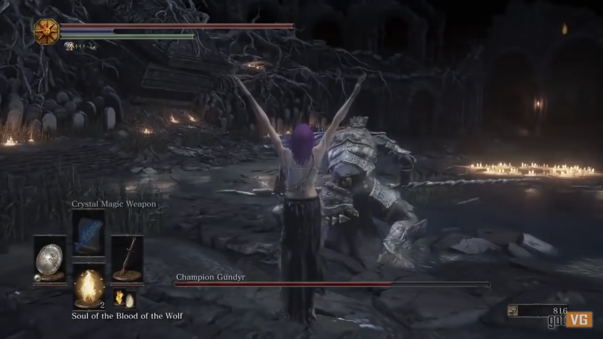 В то время, как многие игроки мучаются и не могут осилить Souls игры, находятся люди, для которых прохождение обычным образом уже наскучило, и они придумывают что-то интересное. В этой статье речь пойдёт о 5 странных способов прохождения Dark Souls. Странный способ борьбы с боссом Первый игрок подумал, что сражаться с Чемпионом Гундиром просто уворачиваясь и нанося урон - скучно. Он поставил себе условие: прежде чем уклоняться он должен несколько раз прокрутиться вокруг своей оси, а перед атакой восславить солнце. Также он менял оружия и сбрасывал броню, но всё это не помешало ему убить босса, пропустив всего лишь один удар. Прохождение на барабанах Следующий игрок тоже решил, что просто кататься по локации и размахивать оружием с помощью обычного управления не очень интересно. Он заменил обычный геймпад на барабаны. Только для того чтобы лечиться и бегать он использовал обычные кнопки контроллера, но обзор и удары полностью контролировались барабанами. Прохождение на гитаре На этом