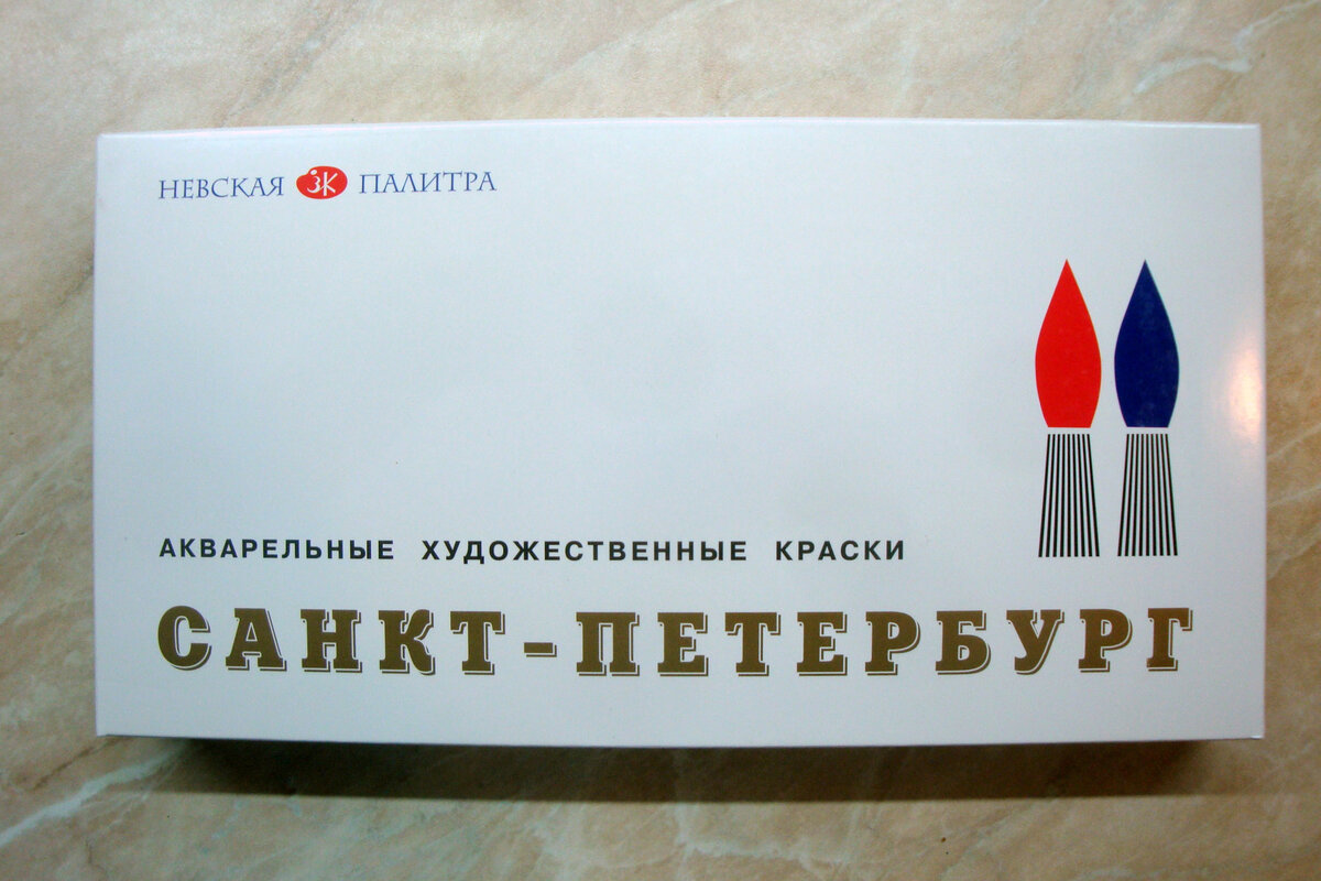 Коробочка увесистая, солидная, тяжёленькая. С логотипом завода художественных красок "Невская палитра". И вот который день я разглядываю их логотип, не могу его расшифровать! Мне кажется, что написано на нём ЗК, и всё тут! :)