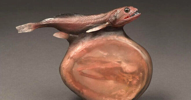 Черный Пожиратель Chiasmodon niger это глубоководная рыба, которая совершенно невидима. Он месяцами ждет своей жертвы, а когда наконец появляется возможность, ему просто нужно ее съесть, независимо от того, какого размера добыча.Следовательно, живот черного пожирателя похож на бесконечно растяжимый мешок, прикрепленный к животу, благодаря чему он выглядит так, как будто он плавает на гигантском воздушном шаре. При максимальном растяжении брюшная мембрана очень тонкая, почти прозрачная, поэтому видно, что внутри. Кроме того, он может открыть челюсть до 160 градусов! Размер его полностью открытых челюстей может равняться длине его тела. Благодаря таким качествам он может съесть жертву, в десять раз большую, чем он сам.