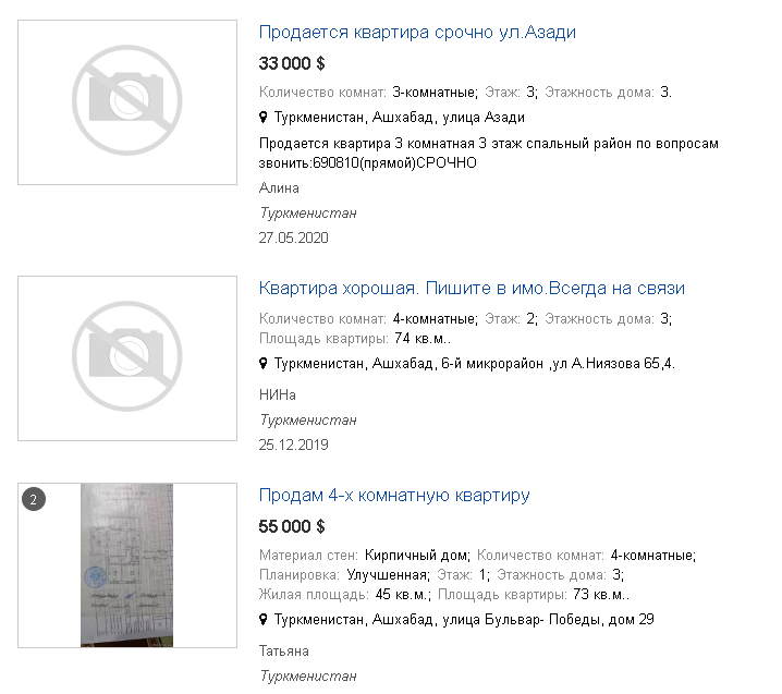 Сегодня решил разобраться в ценах на жилье в Туркменистане. Обычно, когда сравниваешь с Москвой, всегда удивляешься, почему в Москве так дорого, а где-нибудь в Европе с разы дешевле стоимость квадратного метра. Но, в принципе, все компенсируется стоимостью обслуживания недвижимости в Европе, где оно дороже, тем в Москве и России в целом. Ашхабад (столица Туркменистана), оказывается, по ценам на жилье может побороться с Москвой. Получается, если судить по 4-ех комнатной квартире, цена квадратного метра в Ашхабаде - 52 000 рублей, и это, видимо, старый 3-ех этажный дом, а квартира на первом этаже. Есть квартиры дешевле, есть квартиры дороже, но, видимо, 50 000 рублей за метр - средняя и нормальная цена для Ашхабада. Почему я сказал, что цены схожи? Потому что в Москве за 50-55 тыс. долларов можно купить однушку в неплохом районе, а в некоторых и двушку. Это, конечно, с сильной натяжкой, но в общем и целом Ашхабад выглядит дорогим, при том, что люди получают ничтожно мало. Для тех, кто