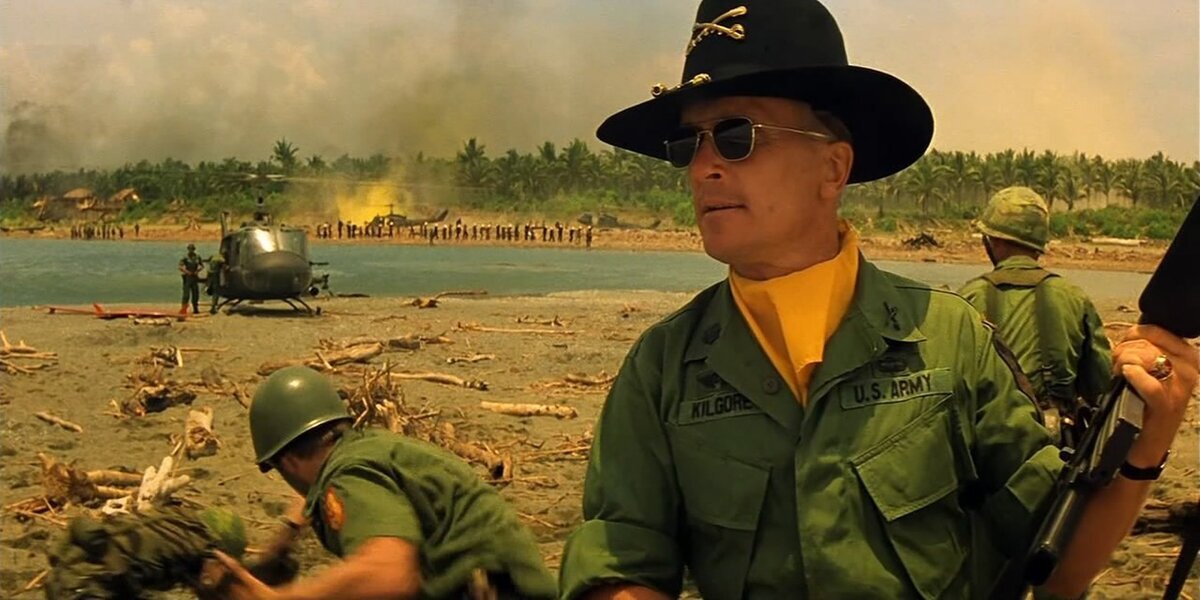 Роберт Дюваль появляется в одной из самых захватывающих сцен в истории кино в роли полковника Килгора. Если вообще можно говорить о «культовой актерской игре», то это именно она. Знаменитые кадры, когда он включает «Полет валькирий» Вагнера во время вертолетного налета, — бессмертный кинокадр. То же самое верно и в отношении его страшного высказывания: «Я люблю запах напалма по утрам… Он пахнет… победой».