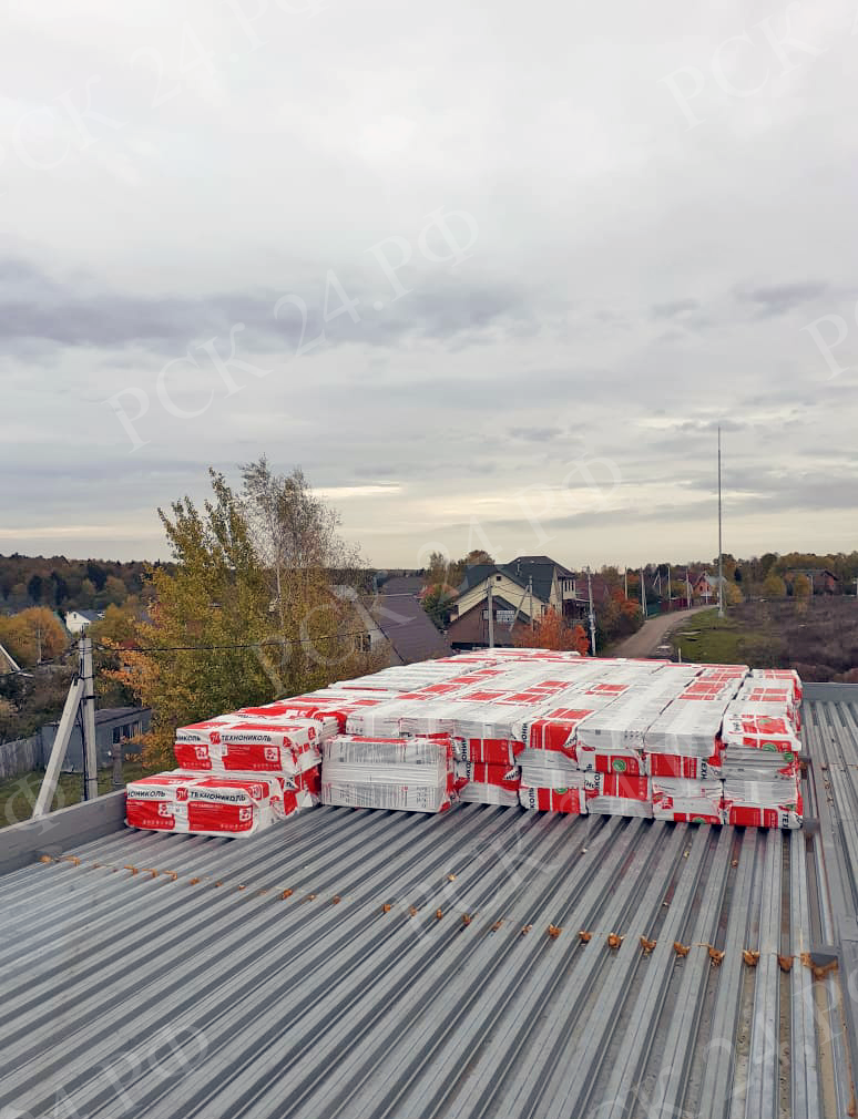 Виды работ: устройство мембранной кровли (пароизоляция, утепление 200 мм, ПВХ мембрана Пластфоил).
