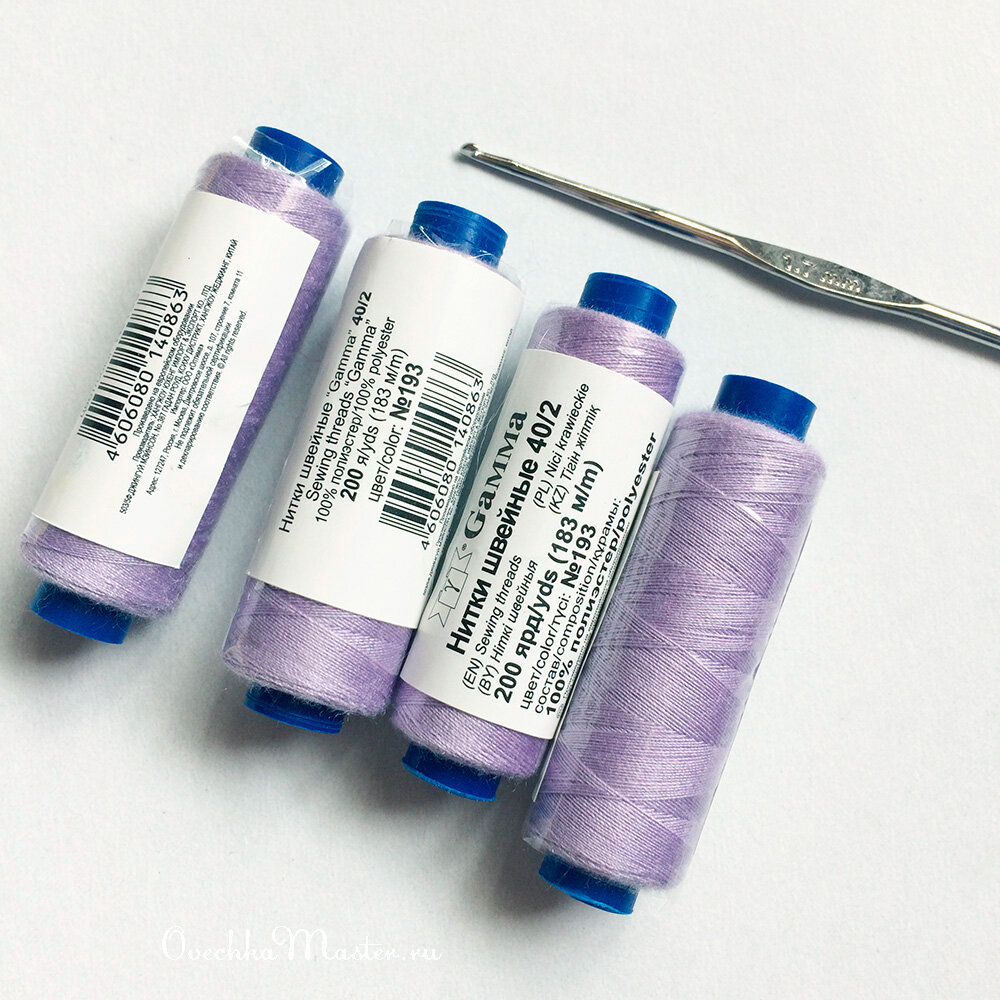 Всем добрый день. Одна моя читательница задала вопрос про расход швейных ниток и тем самым вдохновила меня на вязание салфетки. Все дело в том, что в последнее время я часто делала небольшой вязаный декор из швейных ниток, либо игрушечную одежду и аксессуары. Однако выбирала нитки из тех, что есть в налии. И не всегда они новые. А соответственно точно оценить, какой расход ниток я не могу. Поэтому решила купить новые ниточки, связать салфетку, по возможности израсходовать все катушки и посмотреть, какой размер салфетки получится. Итак, швейные нитки я взяла фирмы "Gamma" (полиэстер, 200 ярд / 183 метра). Есть точно такие же нитки с намоткой ровно в 2 раза больше, то есть 400 ярд. Крючок взяла № 1,7, чтобы вязание было достаточно воздушным. Схему нашла первую попавшуюся. И вязала по схеме без изменения рисунка. Узор очень простой. Достаточно один раз в начале каждого ряда посмотреть, что вязать дальше. Он повторяется 6 раз по кругу. Крупный план выглядит очень громоздко, на са