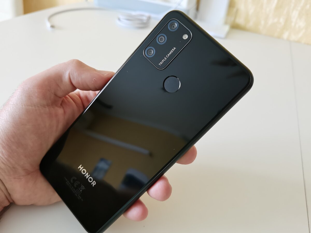 Honor 9A – новый смартфон из серии бюджетных устройств китайского производителя без сервисов Google. За среднюю модель в линейке компания просит 11 тысяч рублей, а в случае распродаж – на пару тысяч меньше. Отличительная черта новинки – емкий аккумулятор, который обеспечивает два полных дня активного использования. Безусловно, емкая батарея на 5000 мАч сказалась на толщине устройства. Новинка не может похвастаться тонким корпусом, которым отличаются все более-менее современные смартфоны. Учитывая цену, производитель сделал заднюю панель из пластика. Лицевая сторона прикрыта хорошим, устойчивым к царапинам стеклом с олефобным покрытием. Из коробки вы достанете смартфон с наклеенной заводской пленкой. Кстати, в коробке только адаптер на 10 Вт и кабель. Производитель в комплект с устройствами Honor не кладет наушники достаточно давно. Несмотря на бюджетную цену не обделен смартфон определенными фишками. Так, на задней панели отличный по скорости реагирования дактилоскопический датчик. Фр