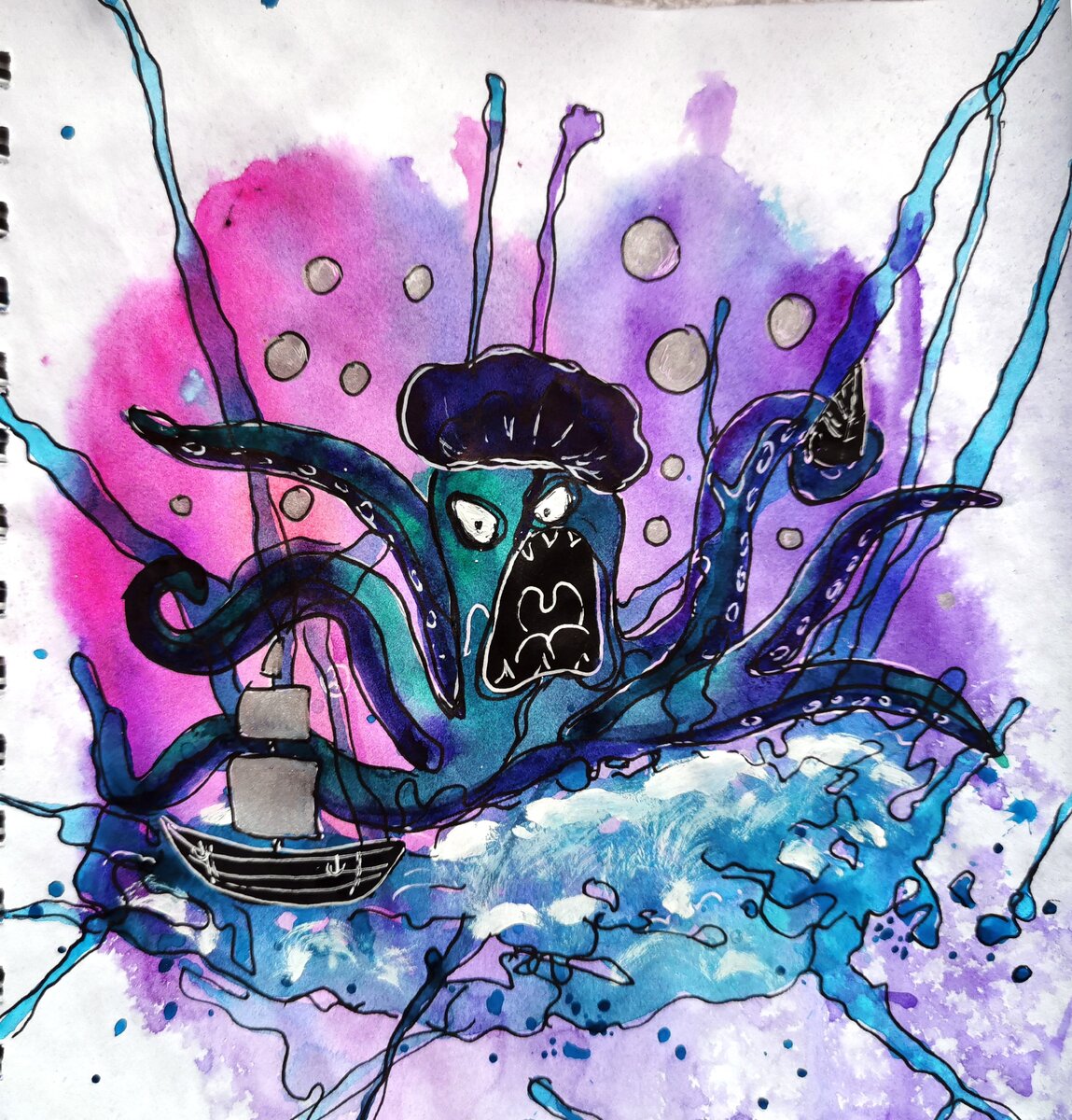 Всем привет! Собственно вот. Купила я давеча скетчбук, с относительно плотной бумагой, дала себе зарок, что буду в нём калякать. Ну хоть что-то. А то совсем уже забыла как карандаш и линер в руках держать, про краски молчу... Да и не нужно оно, вроде как, но... В общем решила начать с клякс, а там как пойдёт. Кстати, очень классный способ - можно с детьми так рисовать, с ними даже интереснее=) Но мои по бабушкам разъехались... Так что подключаю воображалку сама. Суть очень проста, мочим лист, рандомно капаем краску, а потом уже смотрим что можно сотворить из клякс. Можно добавить разводов (много воды и краски + фен), а поверх этого безобразия фигачим линером. Дальше уже начали какие-то идеи приходить в голову. Решила нарисовать лисичку. И да, разводы и линер, а ещё точки. Давно такие скетчи не рисовала=) А раньше куча была, да все в черновиках... Тут та же тактика - пятна, вода, фен, линер. В общем суть да дело, а ночью обнаружила себя на кухне... Твою на лево! У меня заказ висит, а я