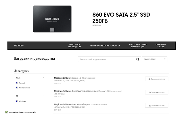 Ну вот, после того, как Windows 10 успешно установилась с загрузочной флешки на мой компьютер, могу протестировать программное обеспечение Samsung Magician с графическим интерфейсом, позволяющее управлять накопителем SSD 2.5" Samsung 860 EVO. Программа Samsung Magician и руководство по ее использованию есть на официальной странице производителя.