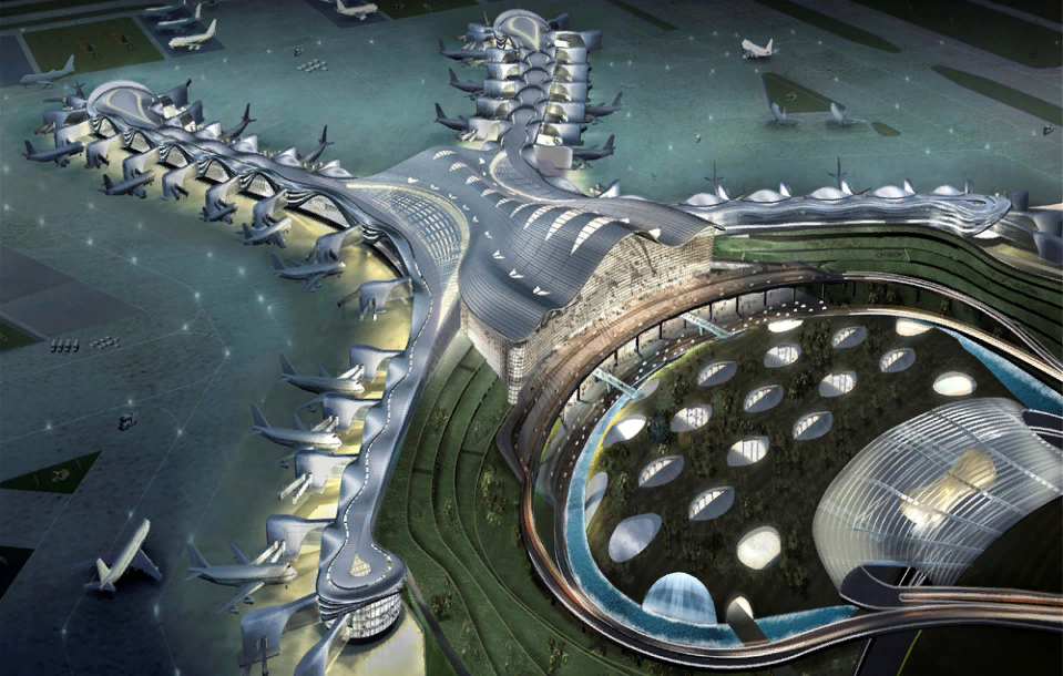 1. Kohn Pedersen Fox Associates (KPF), аэропорт в Абу-Даби, ОАЭ, 2017 г. Разработанный компанией Kohn Pedersen Fox Associates (KPF) новый терминальный комплекс Midfield в Международном аэропорту Абу-Даби имеет решающее значение для укрепления позиций Абу-Даби как транспортного узла и туристического направления. В рамках генерального плана терминал задуман как ворота в город. Конструкция создает большие, беспрепятственные внутренние зоны, которые улучшат опыт пассажиров и могут обеспечить долгосрочную адаптацию к требованиям отрасли. Уникально спроектированные длиннопролетные арки поддерживают парящую крышу и достигают 50 метров в своей самой высокой точке. И наоборот, внутренний масштаб зала отправления придает зданию открытость, которая позволяет обеспечить значимую связь между наружным ландшафтным дизайном и внутренним гражданским пространством. 2. Studio Fuksas, Международный аэропорт в Шэньчжэне, Китай, 2013 г. Символическим элементом плана является внутренний и внешний двойной