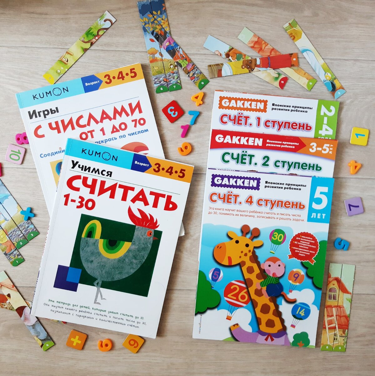 Именно обучение, а не просто знакомство со счетом предметов, когда мы показываем на ушки кошки и проговариваем «у зверушки на макушке два ушка», «посчитаем пальчики на ручке», «а сколько цветочков в вазе» и т.д. Так вот обучение правильнее всего начинать с покупки рабочих тетрадей. И желательно, если это будет не просто сборник типа «Годовой курс, который научит Вашего ребенка всему и сразу»: там Вам будут и буквы, и цифры, и вся подноготная устройства планеты и все, что Вы можете узнать о животных наших широт, и много чего еще. А именно узконаправленные тетради только на освоение счета. В этом плане, пожалуй, нет ничего лучше, чем японская методика освоения счета под название Kumon.
