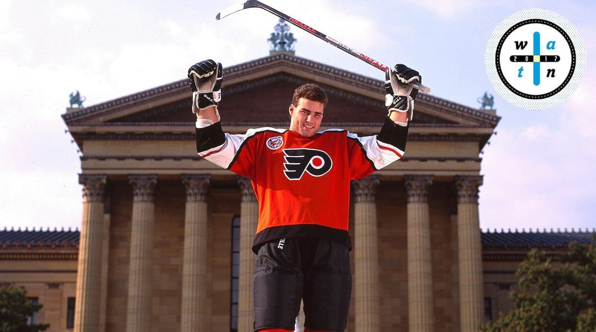 Первый сезон за Флайерз Линдрос провел великолепно: 61 игра, 75 очков. Нет, фото не с первого сезона.