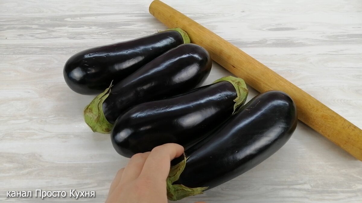 Баклажаны промыть и обсушить. Затем с помощью скалки раскатать баклажаны до мягкости, но так, чтобы они остались целыми, нигде не лопнули. "Раскатанные" баклажаны убираем пока в сторону.