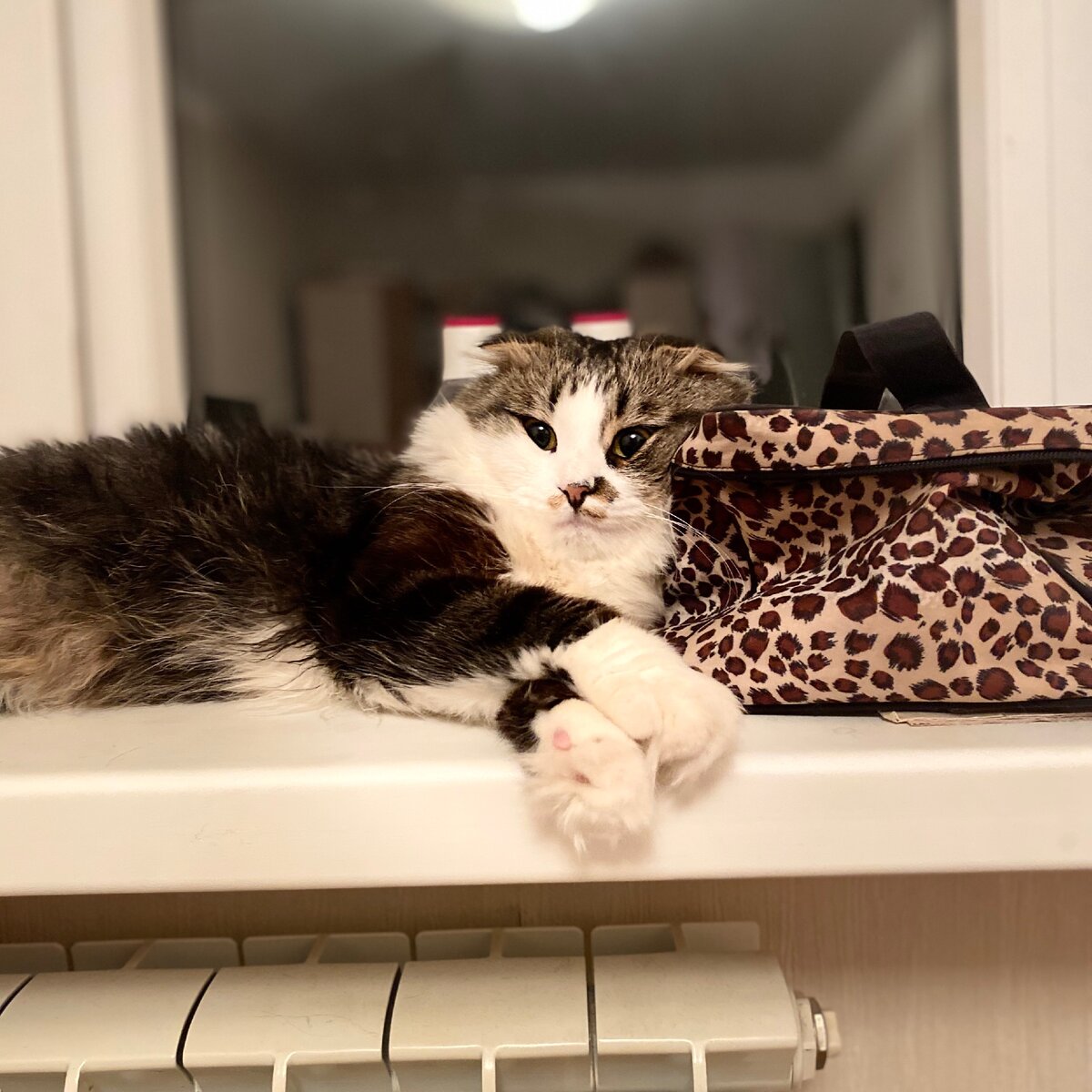 Утром просыпаешься, а на полу валяется чей-то котик. Подходишь поближе: "О, так это ж наш!" Кузяка тут же просыпается и здоровается. Ещё