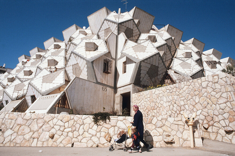 В частности тут был реализован смелый проект архитектора Цви Хекера родом из Польши (а Рамот Полин как раз переводится как Польские высоты), которому заказали квартал так называемых "социальных домов" для ортодоксальных семей. "Социальных" - значит очень дешевых, поскольку ортодоксы люди неработающие, живущие на пособия,