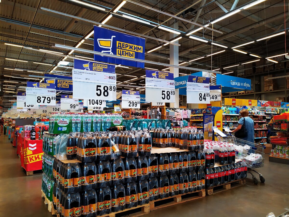 Мне по электронной почте пришла рассылка с новыми скидками. И я решил сегодня заехать, и по каталогу купить себе некоторые товары и продукты которые указаны на страницах рекламы. Действительно скидок очень много, но есть цены всё равно завышенные. В этом обзоре я постараюсь показать вам , что твориться сейчас с ценами в магазине "Лента" города Новороссийск. Большой выбор напитков встречает прямо у входа всех покупателей. Предлагается квас ОЧАКОВСКИЙ в бутылке 2 литра по цене 59 рублей. И COCA-COLA в бутылке 1,5 литра за 85 рублей. Очень качественный яблочный сок "Добрый" в картонной упаковке 1 литр. Цена 63 рубля. Газированный напиток SHWEPPESS в бутылке 0,9 литра. Цена 70 рублей. Шампунь HEAD&SHOULDERS с кокосовым маслом 400 мл. Против перхоти, укрепляет волосы и ухаживает за кожей головы.Изготовлено в Румынии. Цена 189 рублей. Эмалированная кастрюля с крышкой на 4 литра. Цена 450 рублей. Тушка цыплёнка бройлера местного производителя. Цена 100 рублей за 1 кг. Сейчас по акции сыр "Лам