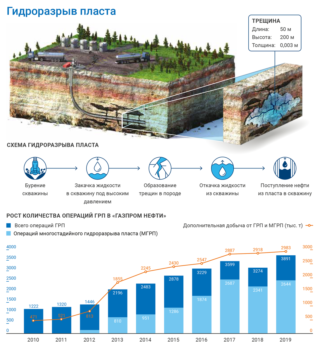 Гидроразрыв пласта (ГРП) — технология, без которой трудно представить современную нефтяную отрасль. Ее развитие сделало возможной сланцевую революцию в США, а российские компании благодаря ГРП получили доступ к разработке месторождений и запасов, которые еще совсем недавно считались нерентабельными. «Газпром нефть» — признанный российский лидер в области применения технологий ГРП. За 25 лет истории компании технология проделала большой путь — от первых опытов до массового применения и сложнейших конфигураций