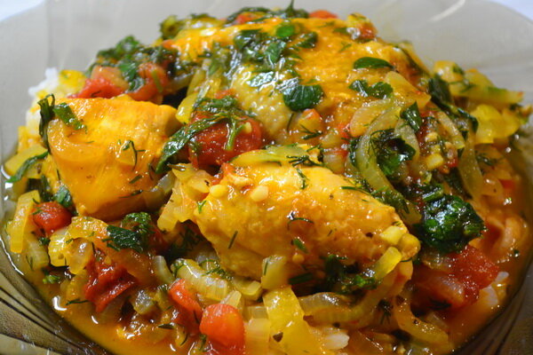 Чахохбили - сочное, ароматное блюдо грузинской кухни. Первоначально его делали из фазана (по-грузински фазан - "хохоби"). Сейчас используют в основном курицу, ее тушат в томатном соусе с большим количеством специй и зелени. ----- Нам понадобится: ----- Конечно, для чахохбили лучше брать спелые, вкусные, сочные помидоры. Но если не сезон, можно взять томаты в собственном соку (не маринованные!). Я взяла такую банку весом 680 г. Помидоры очистить от кожицы, мелко нарезать. Лук нарезать соломкой. Курицу нарезать на кусочки. Разогреть казан или любую толстостенную кастрюлю на достаточно сильном огне. Особенностью чахохбили также является то, что курицу вначале обжаривают без добавления масла. Выложить курицу, обжарить с одной стороны до румяной корочки. Перевернуть, обжарить с другой стороны. Курицу лучше обжаривать частями, если кусочков будет слишком много, они могут пустить сок и начать тушиться. А здесь нужна именно хрустящая, поджаристая корочка. Вытащить курицу, снизить огонь,