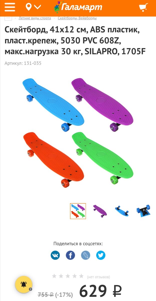 Галамарт магазин обманчивый: есть товары дешевые, но некачественные, а есть дорогие и тоже некачественные. Я собрала для вас 5 вещей, которые стоят своих денег и действительно будет выгодно купить 1. Скейтборд В прошлом году, если не ошибаюсь, были очень популярны скейтборды Penny. Практически у каждого подростка он был, но цена оригинального Penny - 3-4 тысячи. Дак вот Галамарт нашел дешевое решение этой проблемы. За 600 с лишним рублей, можно купить неплохой скейборд. Вам выгода, а дети счастливы. Правда пишут, что максимум 30 кг, но у меня знакомые покупали детям, которые весят больше 40 кг. 2. Контейнеры Очень неплохие стеклянные контейнеры. Очень недорогие и для своей цены хорошего качества. 5 контейнеров от маленького до большого. Прослужат Вам долго, лично проверяла. 3. Бомбочки для ванны Эти обожаемые всеми бомбочки для ванной. 6 штук можно купить всего за 99 рублей, а если на скидки попадете, то еще дешевле. Кстати может сойти и для подарка. Шарики хорошие и выглядят краси