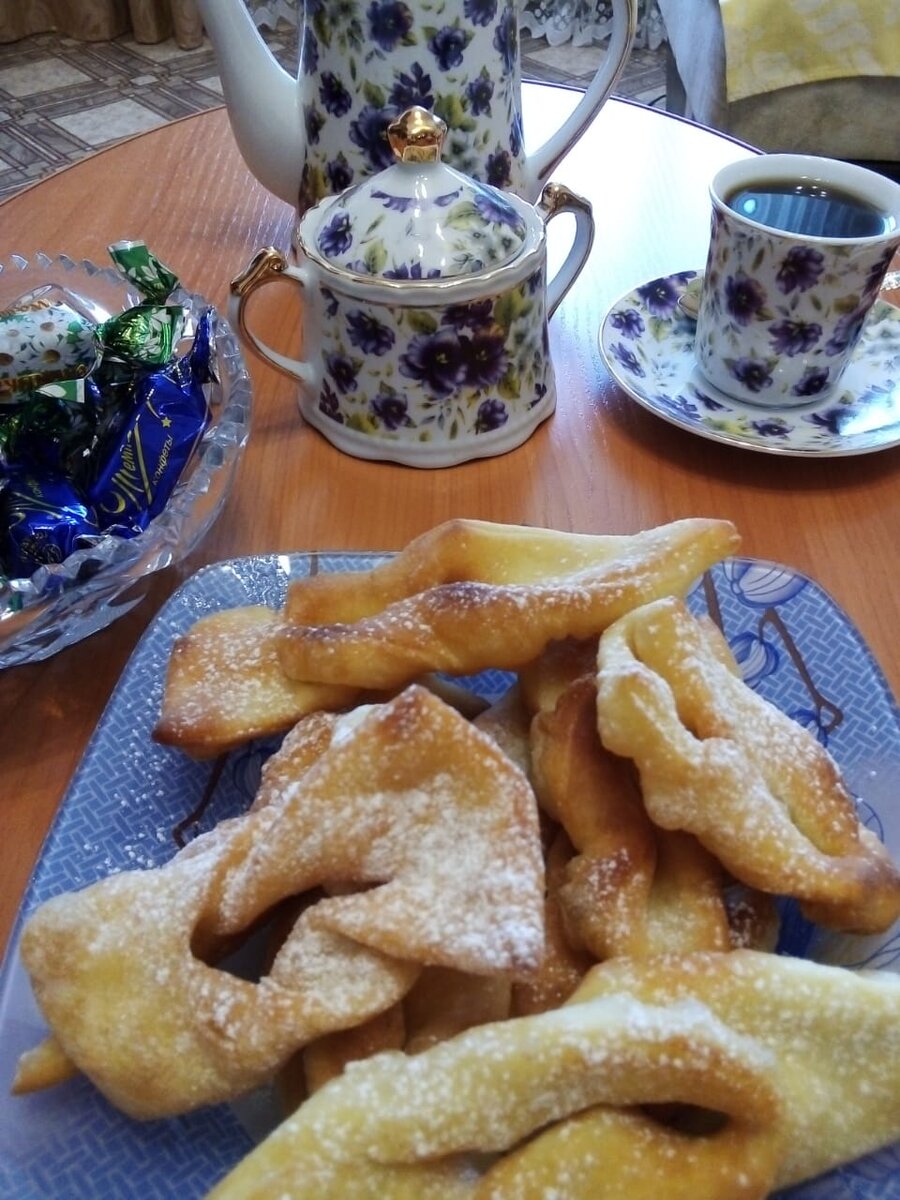 Приготовленная своими руками домашняя выпечка создает в вашем доме теплоту и уют. За чашечкой ароматного кофе или чая соберется вся ваша семья. Весело болтая и делясь впечатлениями ваши домочадцы будут лакомится вашей выпечкой. На этот раз это будет хворост. ИНГРЕДИЕНТЫ: Кефир 2 стакана Яйца 4 штуки Сахар 6 столовых ложек Соль пол чайных ложки Сода 1 чайная ложка Мука 6 стаканов Растит. масло для жарки Сахар. пудра для посыпки Ознакомились с продуктами, приготовили все необходимое и приступаем к замесу теста. В глубокую миску вливаем кефир, добавляем соду и перемешиваем. Кефир начнет гасить соду и будет немного пениться, а на поверхности появятся мелкие пузырьки. Затем в небольшую миску разбиваем яйца, всыпаем сахар, соль и взбиваем до полного растворения сахара. Вливаем яичную смесь в миску с кефиром и еще раз все вымешиваем . Получилась пышная пенистая масса