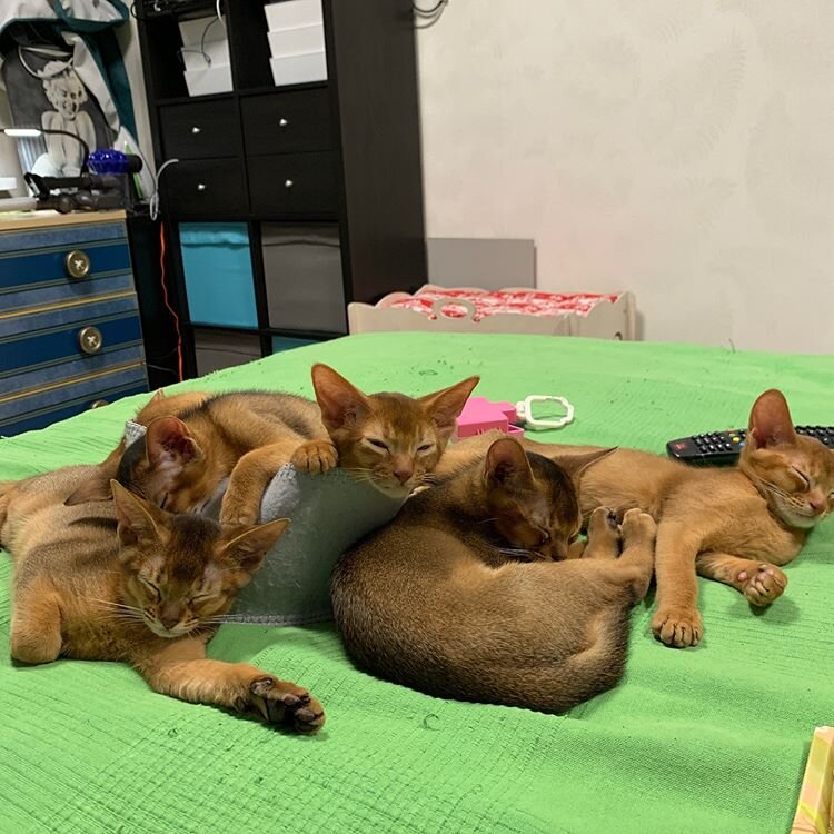 Сегодня @sveta198707 рассказывает нам каково же это быть заводчиком😺 Сегодня бы хотелось поговорит о буднях заводчика. О тех самых буднях, которые всем остаются за кадром. Ну что ж, начнём с того, как я пришла к заводчеству. Я была на восьмом месяце беременности вторым ребёнком, когда муж решил, что нашей домашней, к слову сказать совершенно беспородной, но от того не менее любимойМ Мурки нам мало, и вот мы пошли выбирать, выбрали пришли. Я сказала Саше, да я хочу мальчика, но там как пойдёт. Мы пришли, и он нас выбрал сам, прям вот сразу нас выбрал и для меня это было решающим. До сих пор кстати передерживаюсь мнения, что не мы их выбираем, а они нас. Ну в общем, именно так появился у меня мой первый абиссинский кот. Естественно куда там заводчество, ведь мне рожать со дня на день. И вот он растёт у нас. Дочке было 4 месяца, когда позвонила заводчица и пригласила нас принять участие в выставке. Мы приняли, и с того времени я заболела абиссинами раз и навсегда. Пошли выставки, ох сп