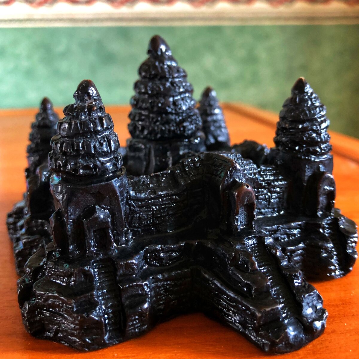 Макет знаменитого храма Ангкор Ват является самым распространенным камбоджийским сувениром. Ангкор Ват, построенный в первой половине XII века, — гигантский индуистский храмовый комплекс в Камбодже, посвящённый богу Вишну. Храм является одним из крупнейших из когда-либо созданных человеком культовых сооружений и одним из важнейших археологических памятников мира. Его размеры действительно впечатляют - храм окружен прямоугольной стеной размером 1,5×1,3 км, а высота его башен достигает 68 м. Наряду с афинским Парфеноном и индийским Тадж-Махалом Ангкор-Ват относится к самым посещаемым архитектурным монументам планеты – его ежегодно посещают свыше 2 миллионов туристов. Не случайно Ангкор Ват изображён на государственном флаге и гербе Камбоджи. В XV веке комплекс перестал использоваться и был заброшен. Открыт для европейской цивилизации он был лишь в 1860 году французским путешественником Анри Муо. Рядом с комплексом расположен город Сием Рип (Реап). Там есть небольшой аэропорт ку