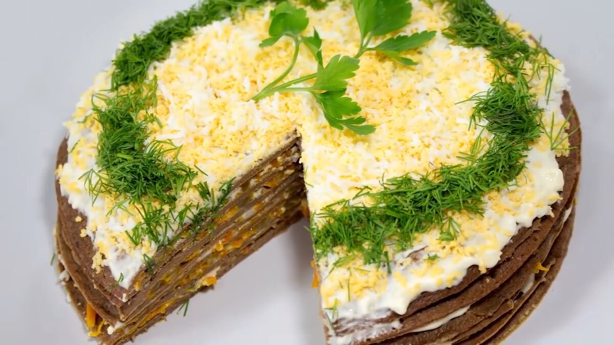 Печеночный торт с овощной прослойкой – пальчики оближешь!