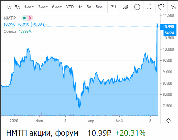 НМТП вырос в моменте на 19%, после объявления дивидендов за 2019 год в размере 1,35 ₽ на акцию. Дивидендная доходность составляет около 14,78% Последний день покупки 24 июля 2020 (закрытие реестра 28 июля).