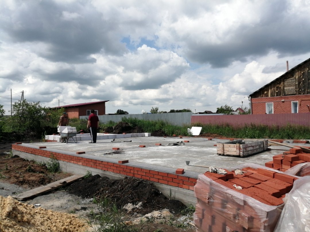 Залить пол решили бетоном, слой около 15см. Дом возводил всего один человек от начала и до конца.