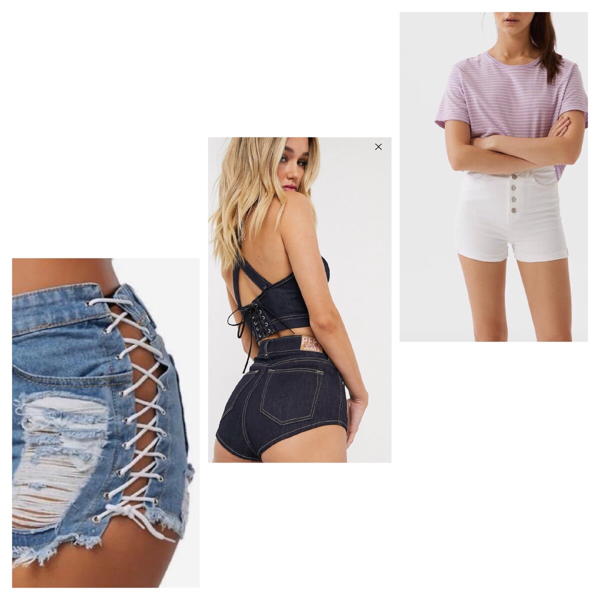 Один из самых комфортных вариантов одежды для теплой погоды - конечно же шорты! В этой статье посмотрим, на какие модели девушкам следует обратить внимание в этом сезоне, а какие лучше обойти стороной. Начнем с антитрендов... Стразы, кружева, клепки, большие разрезы и потертости на одежде - все это нужно оставить в прошлом. На сегодняшний день твёрдо закрепилась тенденция к простоте и минимализму в тканях, фасонах, дизайне. Рассмотрим приведённые ниже модели шорт, от покупки которых я бы рекомендовала воздержаться. Первая модель - запредельно короткие и откровенные шорты, излишне наполненные декором : тут и ассиметричный рваный край, и большие потертости, клепки и шнуровка по всему бедру. Такие шорты были модными лет 15 назад ( если не больше). Сегодня же носить их точно не стоит. Второй вариант даже шортами назвать язык не поворачивается...больше походит на нижнее белье из джинсы. Однако данная модель от Dua Lipa x Pepe Jeans доступна к покупке на сегодняшний день. Безусло