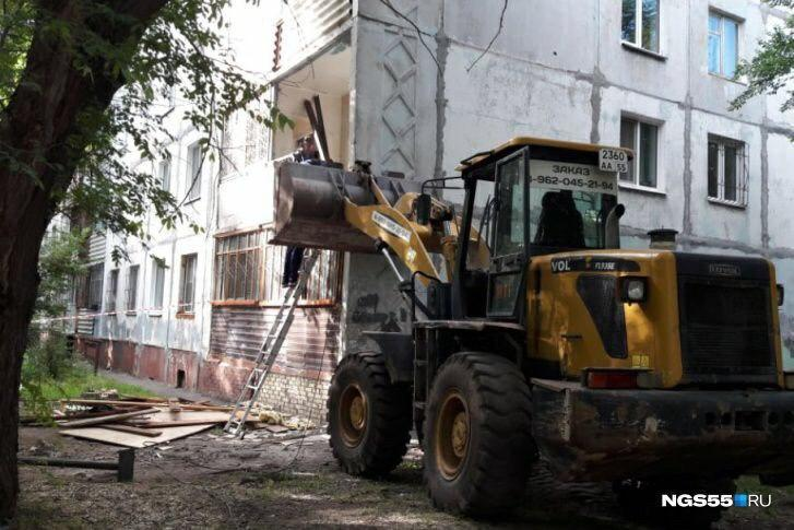 В Омске стена одного из домов начала отваливаться. Подперли её трактором.