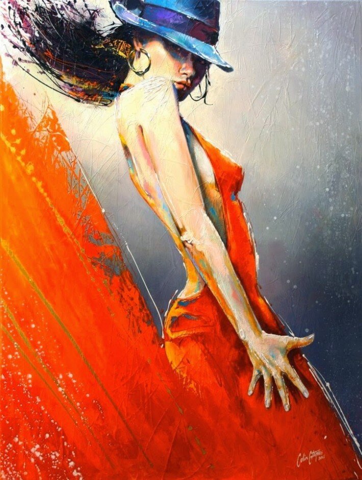 Картины Colin Staples написаны акриловыми красками, это прежде всего портреты людей, в основном в движении. Совмещая классическую живопись с современными приемами рисования, например художник добивается смешивания цветов на холсте, путем непрерывной штриховки.