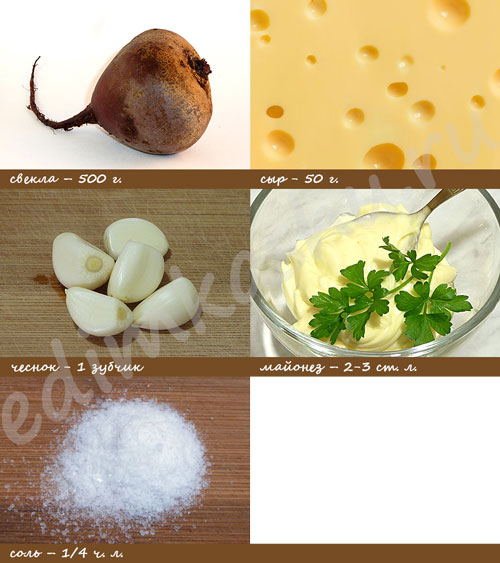 Если свекольный салат с орехами и изюмом нежный и сладковатый на вкус, то салат с сыром и чесноком, по сравнению с ним, можно назвать острым и пикантным. Такую характеристику он получает благодаря использованию чеснока.