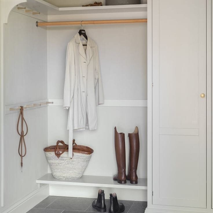 ПРАВИЛО 4. Предусмотреть открытую полку для обуви, открытую вешалку для одежды. Можно еще и пуф, но это по желанию. Шкаф тоже хорошо, но очень часто в наших широтах идут дожди и снег, поэтому одежда должна немного подсохнуть, прежде чем отправиться в шкаф.