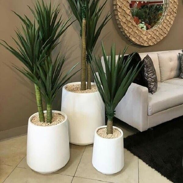 По фактуре: бетон, глина, плетёные, под камень тоже отлично и стильно. Белые тоже ок. Кстати, из всех дешёвых пластиковых горшков только белые и смотрятся хорошо.