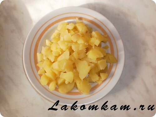 Салат «Оливье по-домашнему». Приготовление. Отвариваем и режем кубиками: