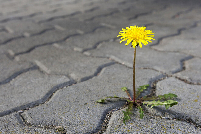 Обычно эстетичный и аккуратный вид имеют только недавно вымощенные дорожки и патио. Со временем они портятся и теряют свою привлекательность. Одной из причин тому является трава в швах. Распространенная проблема: пробившийся сквозь дорожное полотно цветок. Трогательная картинка и совершенно неполезная ситуация для любого типа покрытия. Однако, избежать этого не получается, так как семена растений разносятся с ветром и в благоприятной среде прорастают в любом месте. Подобные прекрасные, но неуместные композиции, украшают карнизы зданий. Не редкость подобное явление и для тротуарной плитки. Между кирпичиками прорастают семена, которые приносит ветер или на лапах – животные. Мощение начинает выглядеть неухоженым. Картина получается не привлекательная: трава и цветы в швах тротуарной плитки портят весь вид приусадебного участка. А если запустить ситуацию и допустить, что растения вырастут, их стебли и корни раздвинут брусчатку. В результате мощение утратит свои потребительск